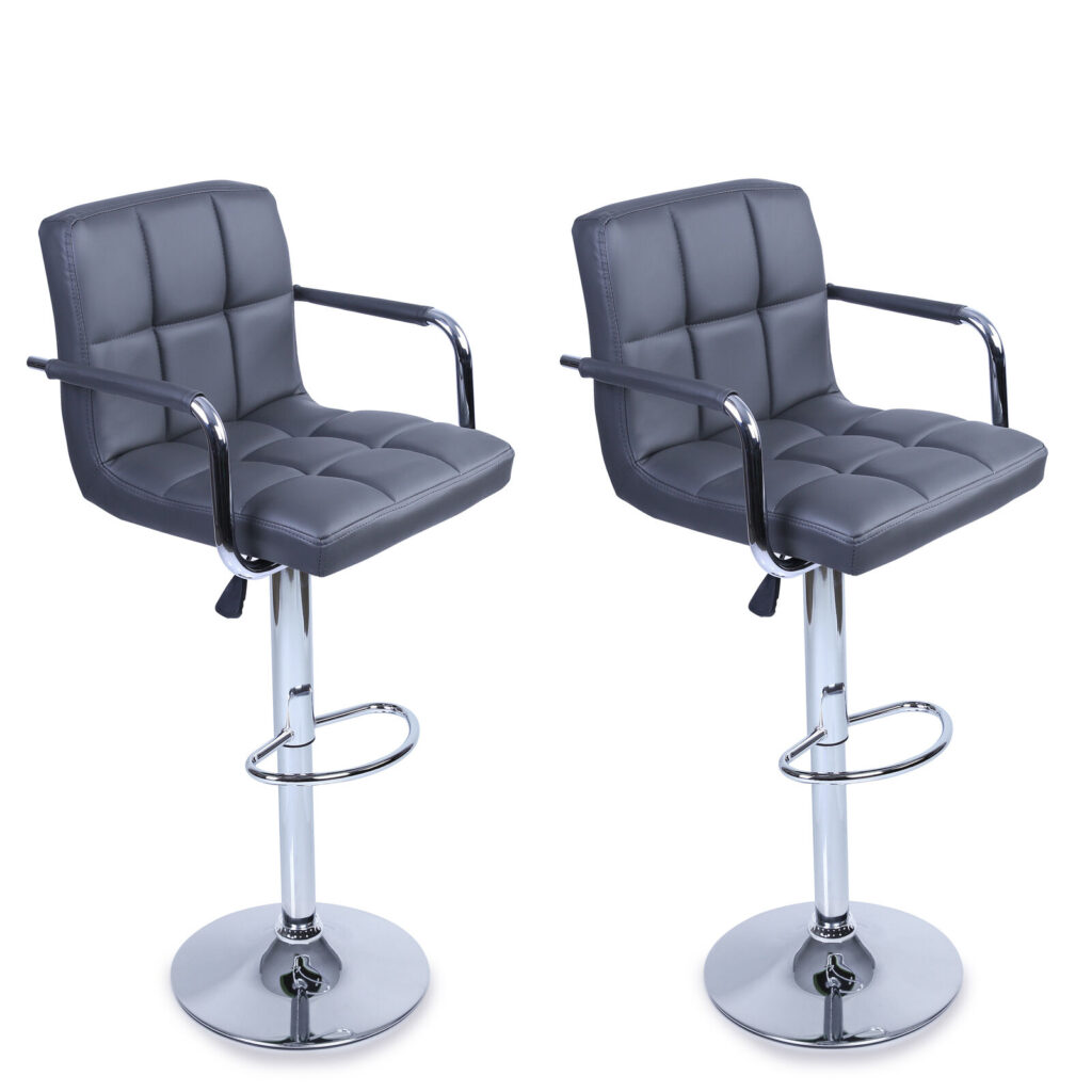“Набір з 2 барних стільців із металевими підлокітниками Сірий”