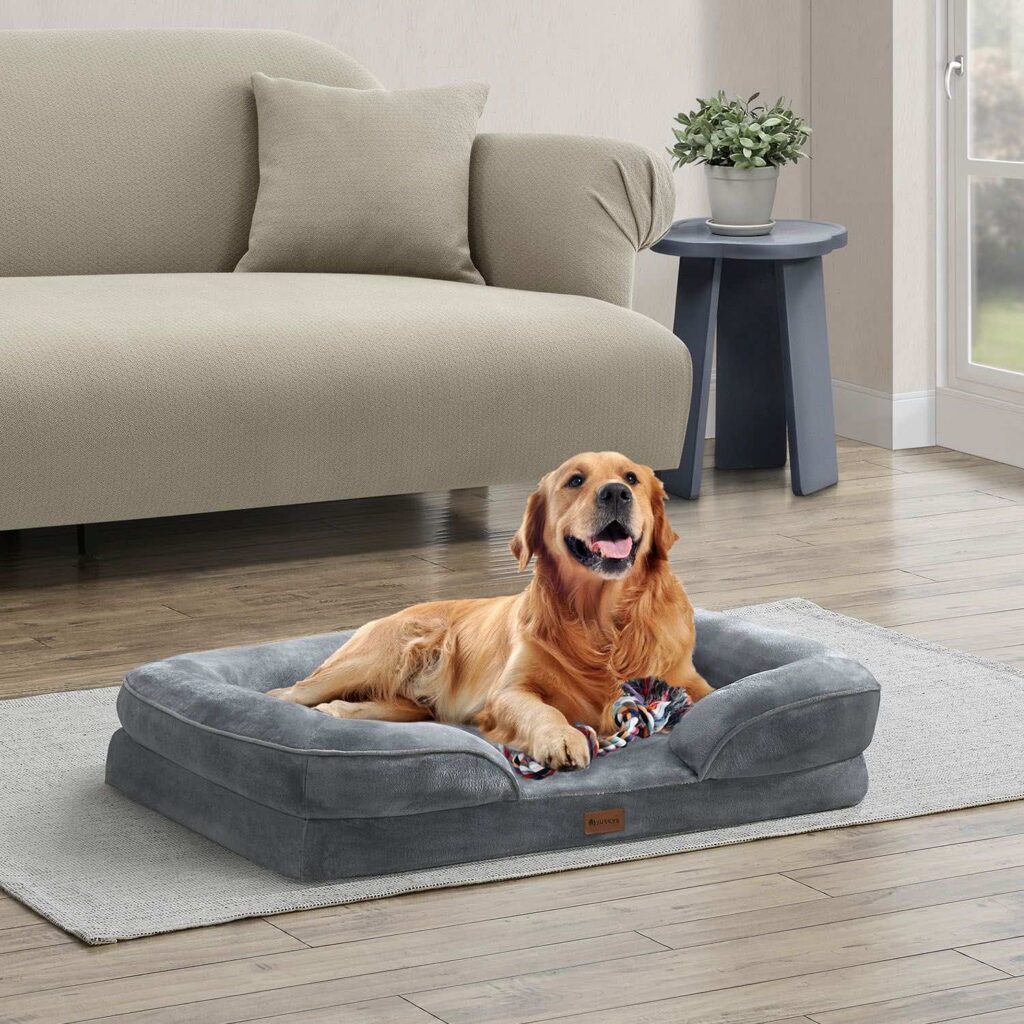 Современная лежанка для домашних животных особенно популярна среди собак. Она дарит защитную среду для спокойного сна, что важно для хорошего самочувствия. Толстый матрас и удобная высота лежания защищают от холодных полов. Мягкий край обеспечивает дополнительную поддержку головы и шеи.