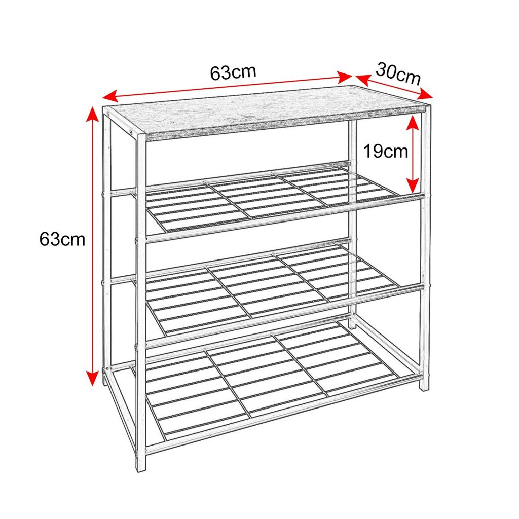 • Висота кожного рівня: 19 см, приблизно до 3 пар жіночого взуття на полицю