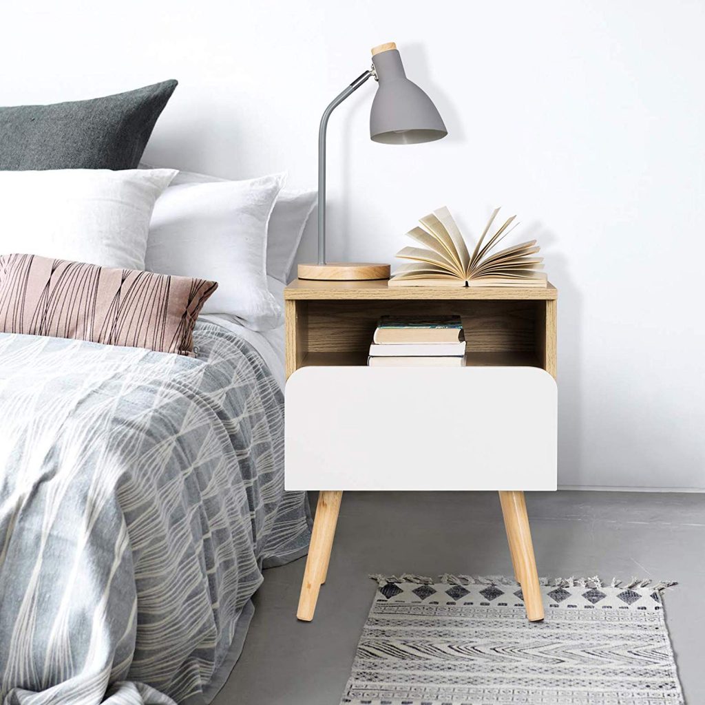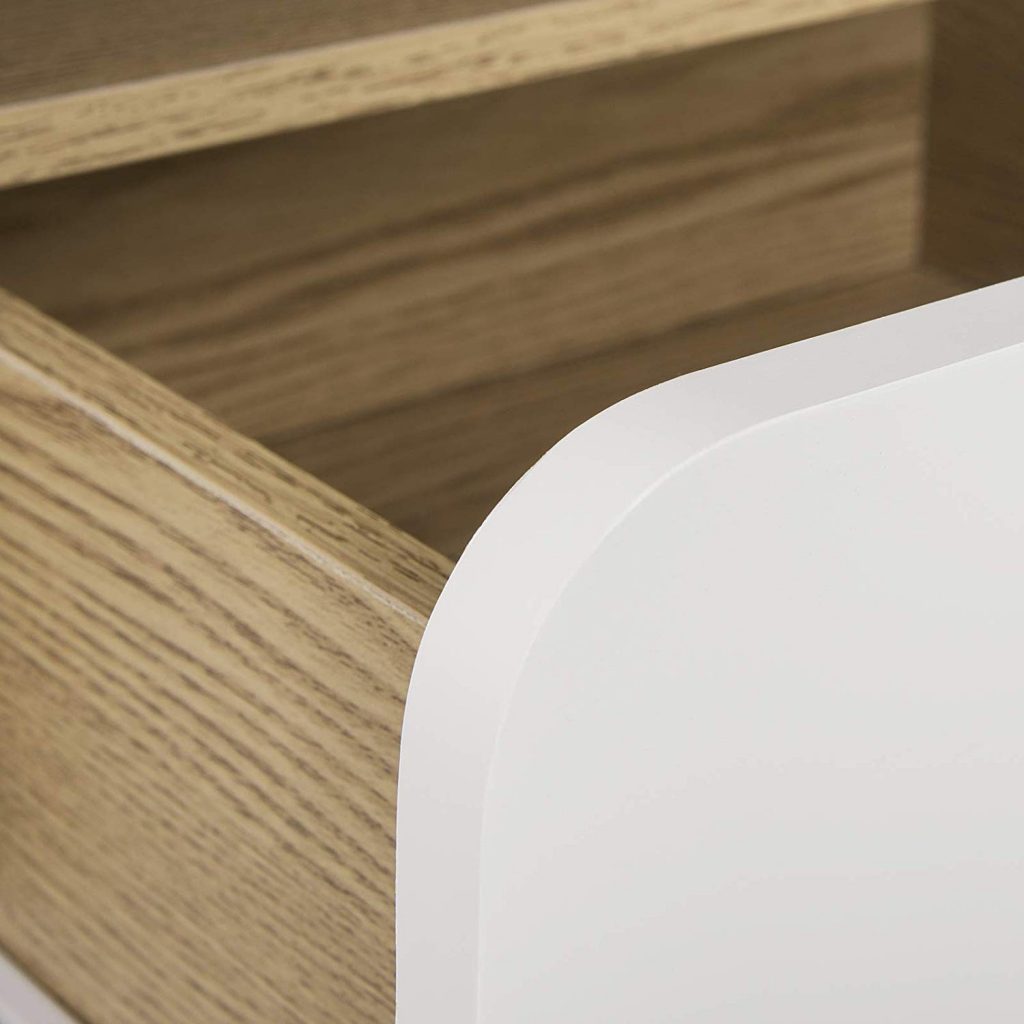 • Приліжковий столик з висувною скринькою та відкритим відсіком для зберігання книг,