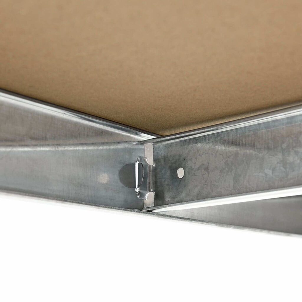 Надежные полки изготовлены из МДФ толщиной 4 мм. Каждая полка может быть загружена до 175 кг, если нагрузка распределена равномерно. Таким образом, полка имеет максимальную грузоподъемность 875 кг. Траверсы предотвращают провисание полок.