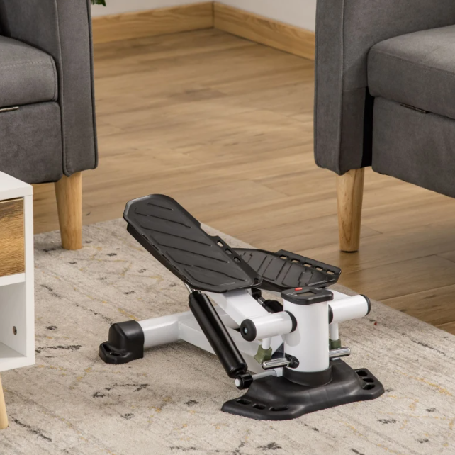 Спробуйте цей мінітренажер від HOMCOM! Він оснащений двома великими педалями, які можна рухати як за годинниковою стрілкою, так і проти неї, щоб урізноманітнити тренування. Кожна поверхня забезпечена текстурованою гумою, щоб ваші ноги не ковзали. Вбудований РК-дисплей показує час, кількість кроків і спалені калорії, щоб ви могли відстежувати свої результати.