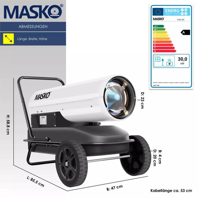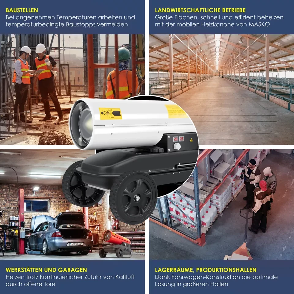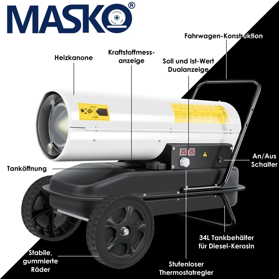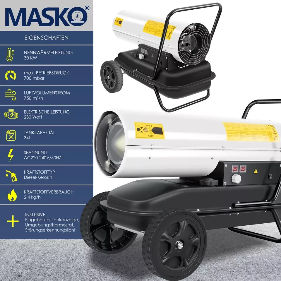 MASKO — тепло та комфорт навіть у найхолодніші дні!Шукаєте надійний та потужний обігрівач для гаража, майстерні, намету чи ферми? Тоді дизельна теплова гармата MASKO — саме те, що потрібно. Надійна, мобільна, економічна та неймовірно ефективна!