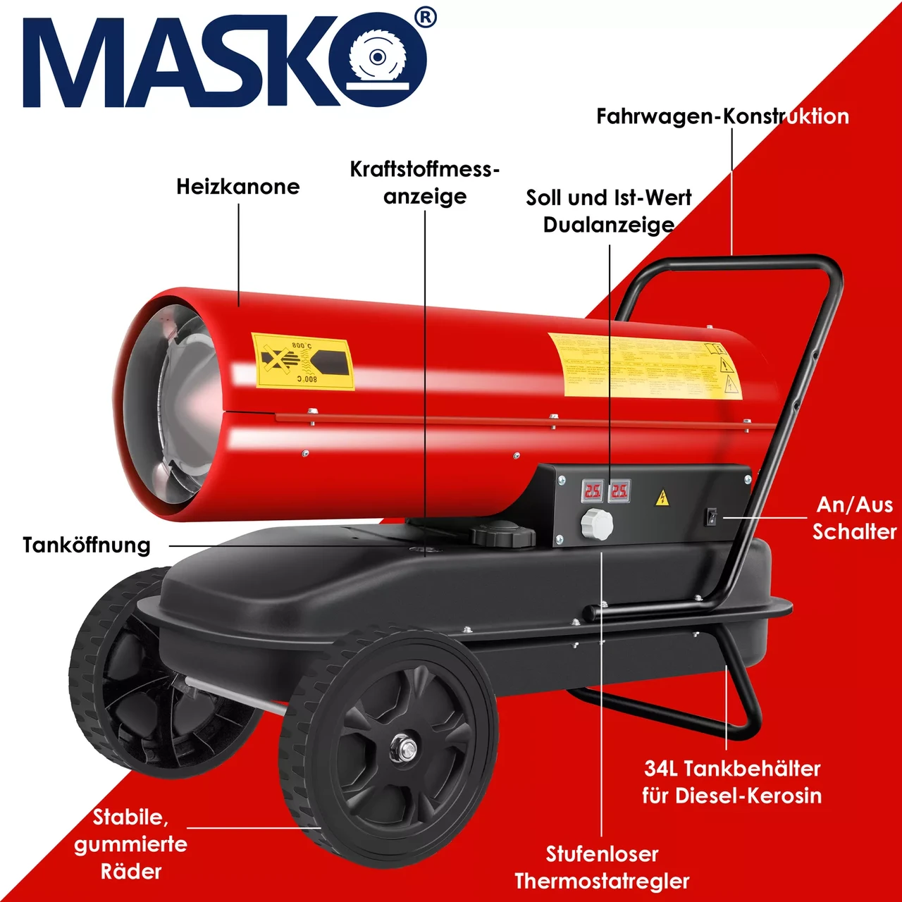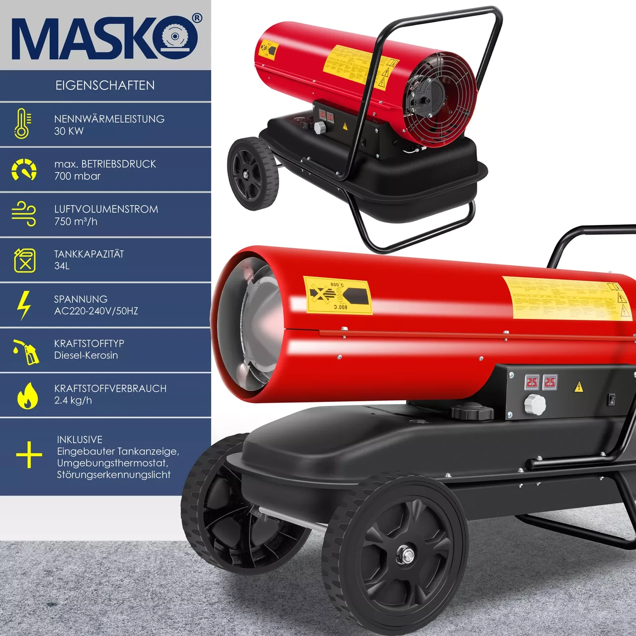 MASKO — тепло та комфорт навіть у найхолодніші дні!Шукаєте надійний та потужний обігрівач для гаража, майстерні, намету чи ферми? Тоді дизельна теплова гармата MASKO — саме те, що потрібно. Надійна, мобільна, економічна та неймовірно ефективна!