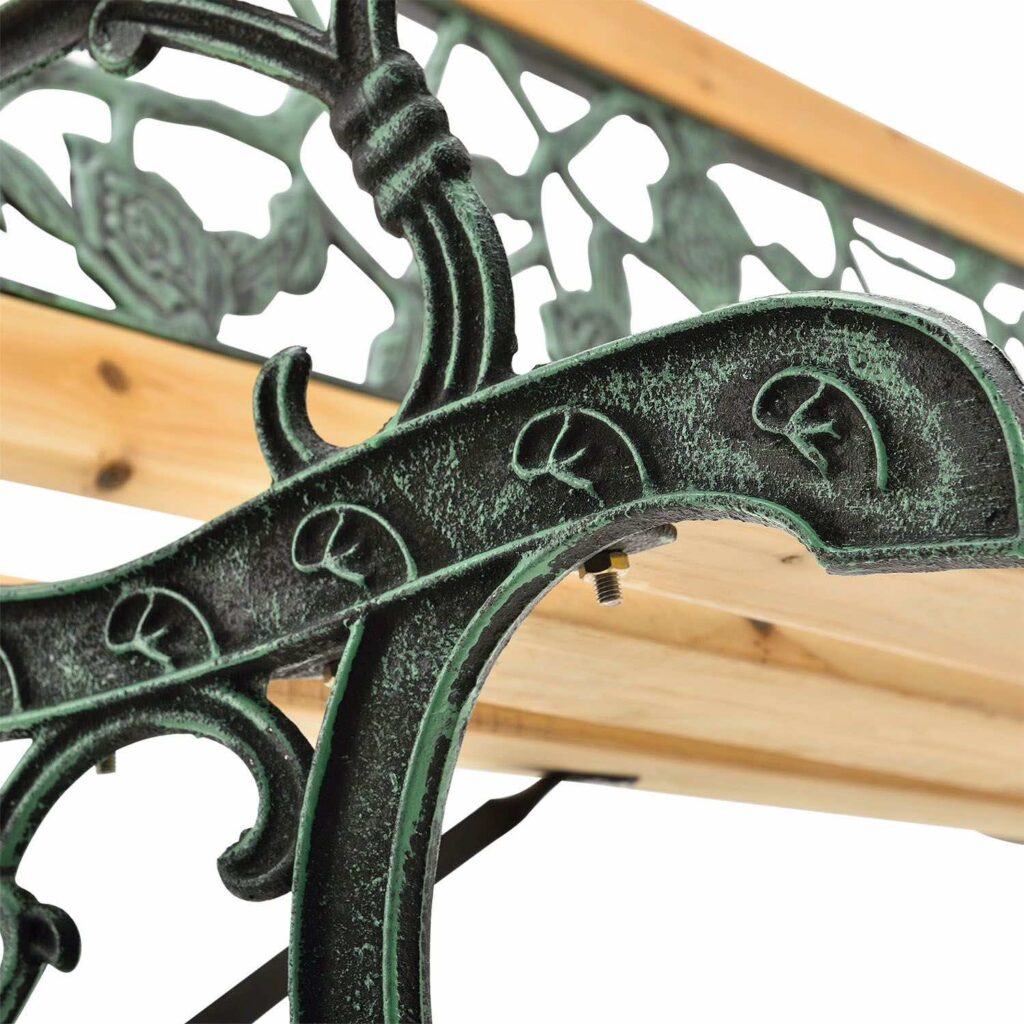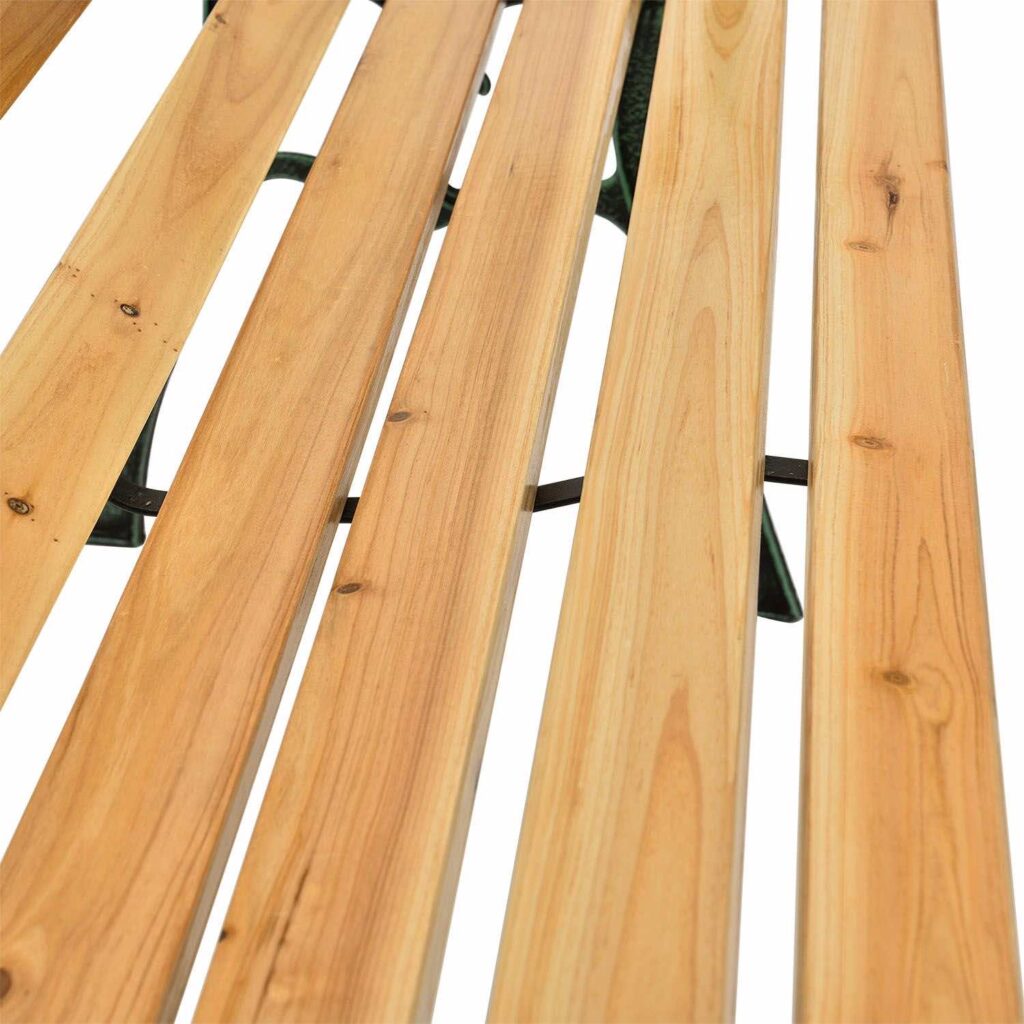Благодаря деревянному каркасу толщиной 18 мм и прочному чугуну скамья устойчива к ветру и погодным условиям снаружи. Покрытие защищает древесину от внешних воздействий, таких как дождь и погода. Ножки соединены с сиденьем соединительными распорками, что обеспечивает дополнительную устойчивость и долговечность.